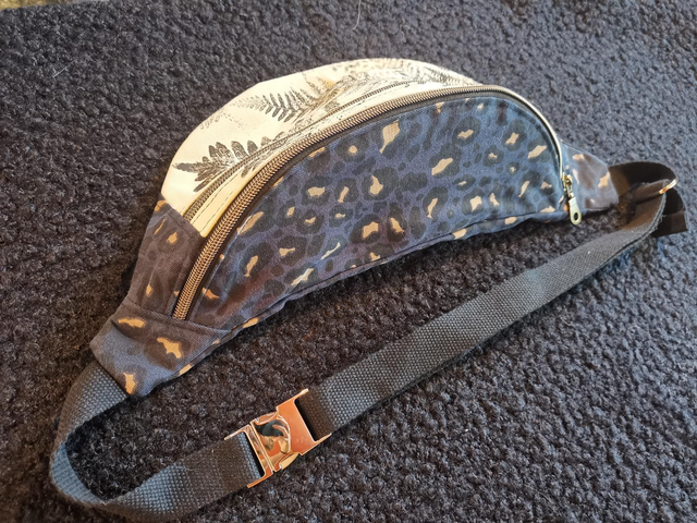 Cuir et tissu, impression végétale de feuilles de fougères.